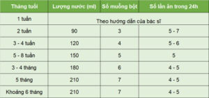 Bảng lượng sữa cần cho bé theo độ tuổi